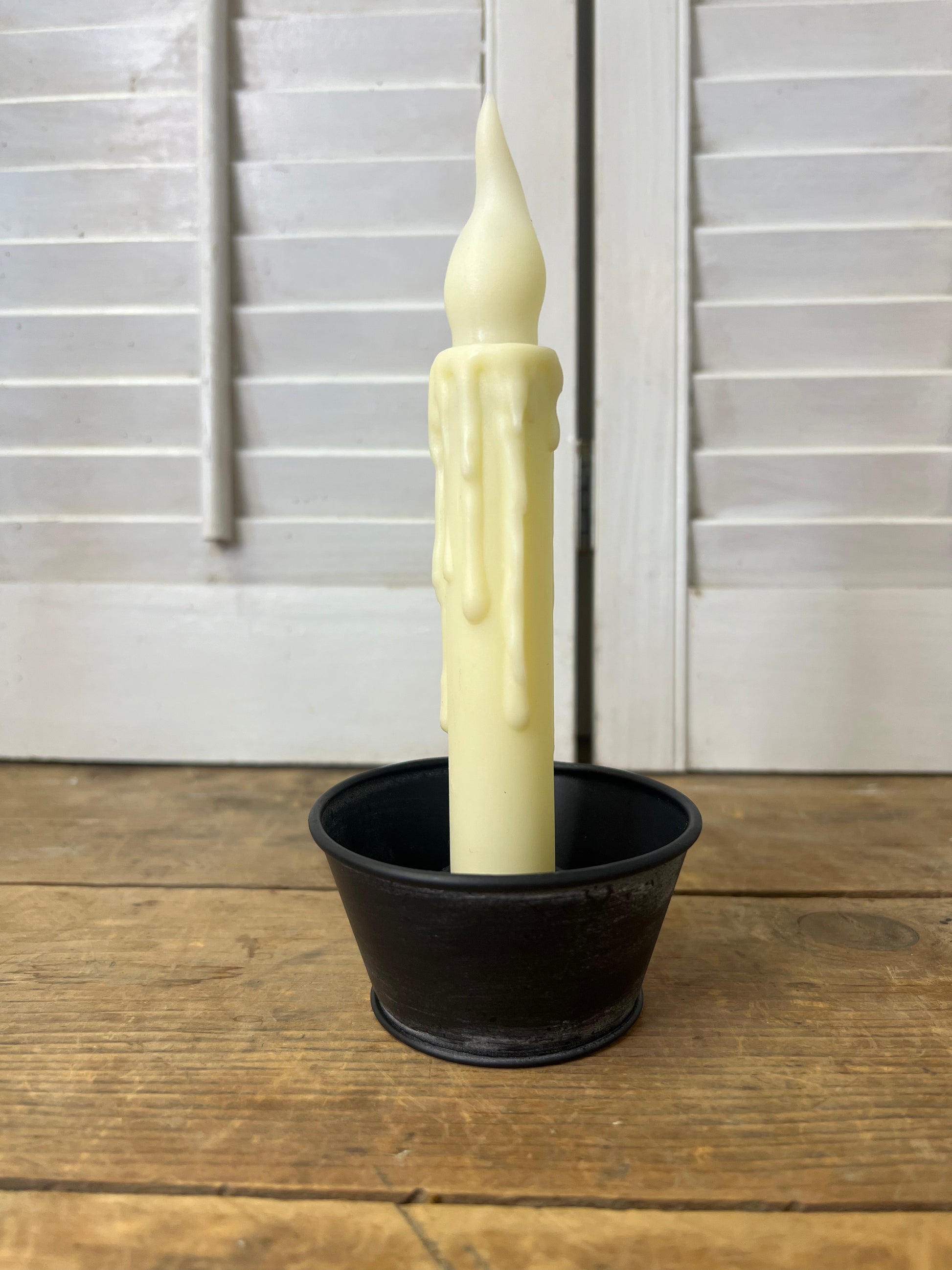 Old Black Metal Taper Cup Candle Holder Primitive Style