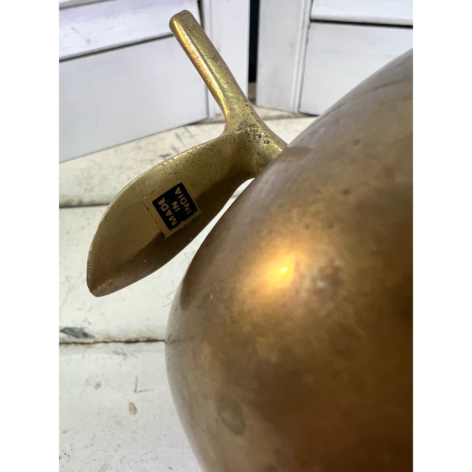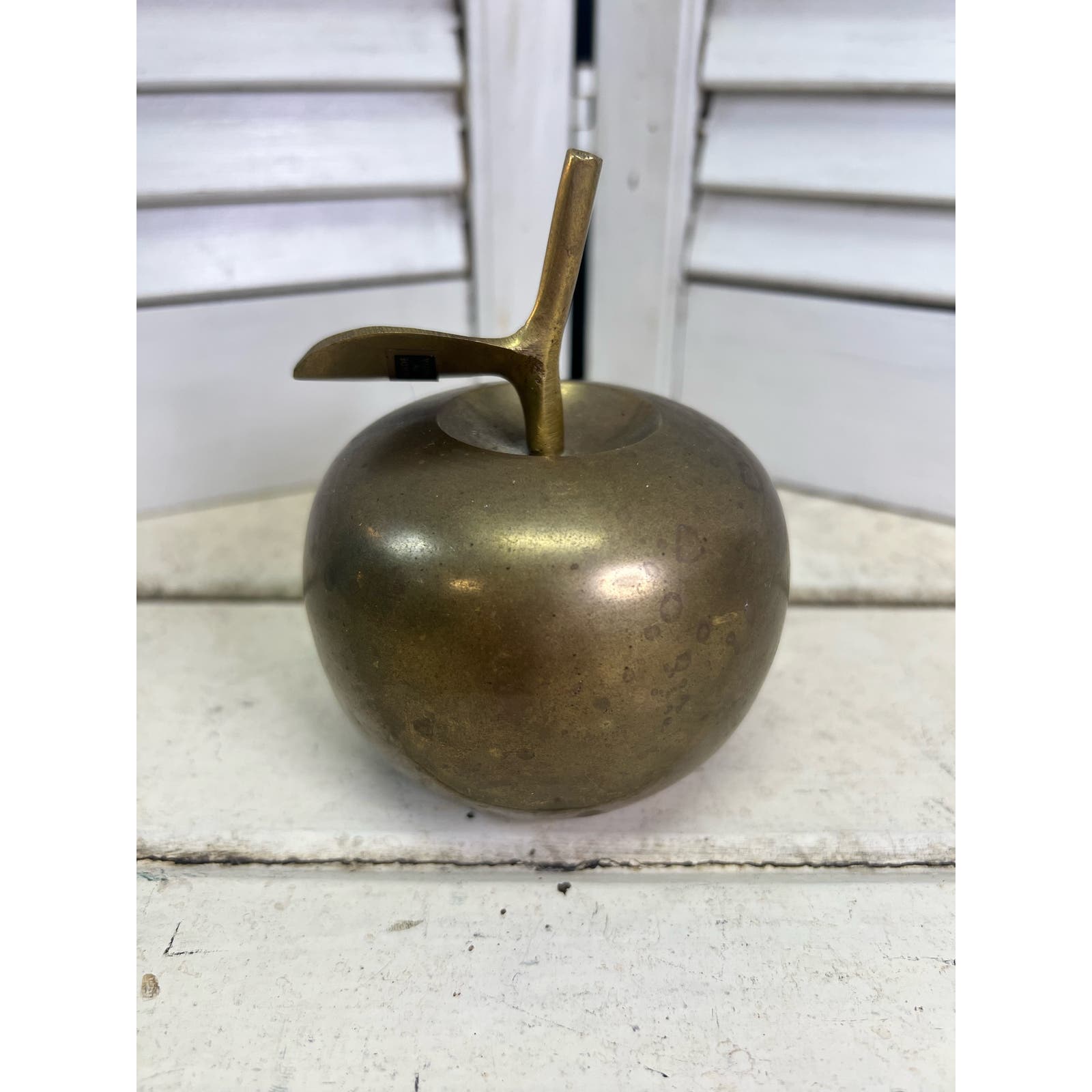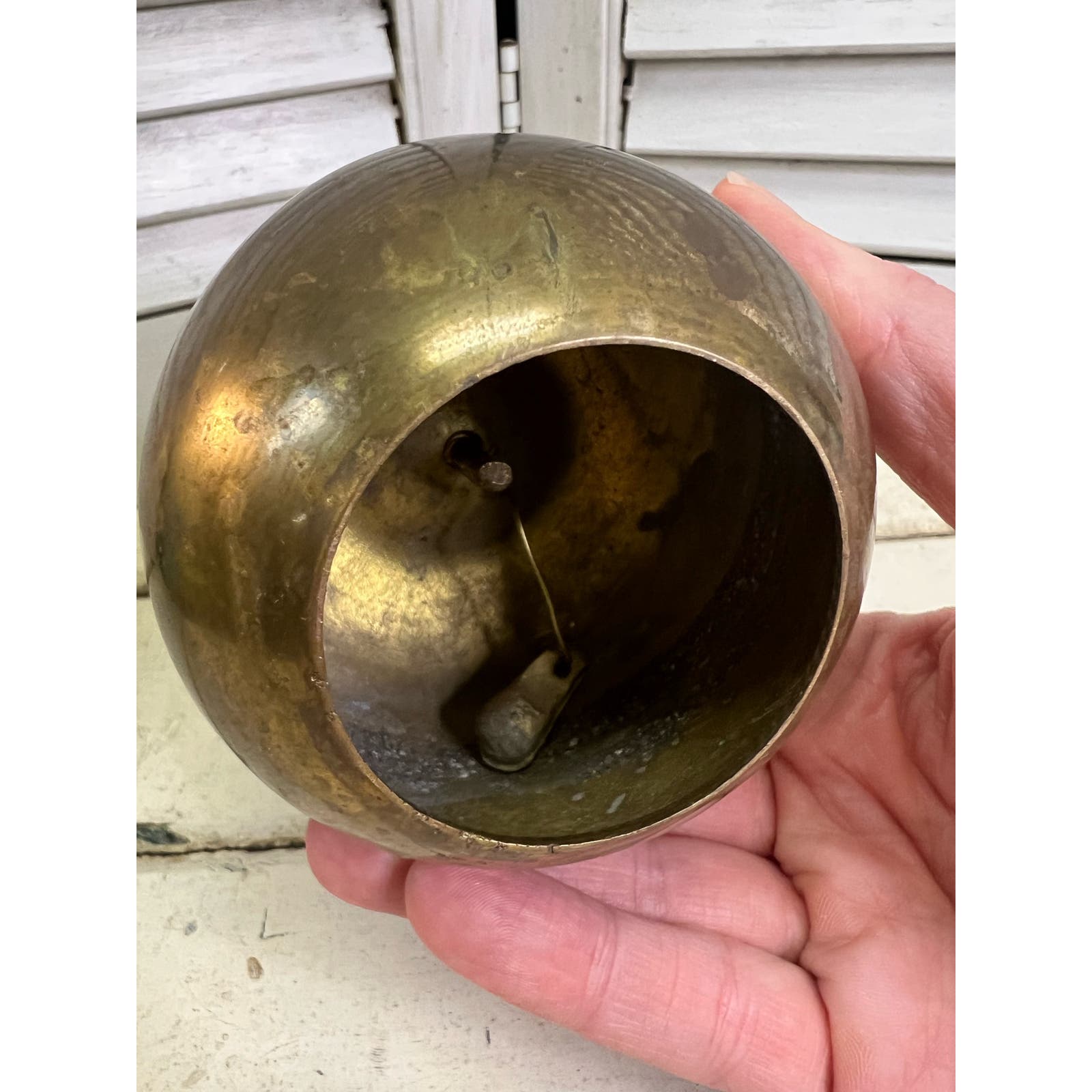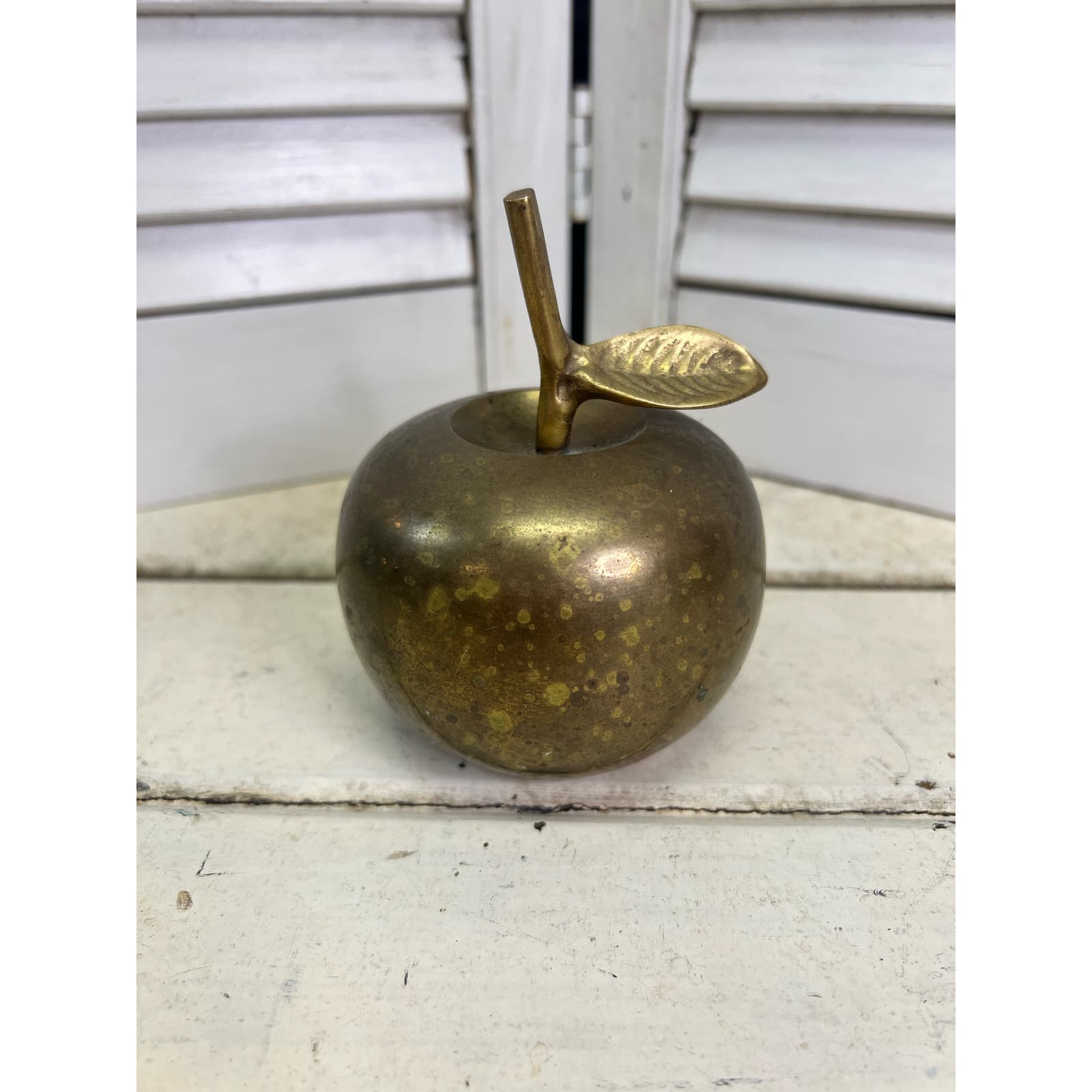 Vintage brass apple shaped bell. Brass is aged with some patina, easily could be polished but I have left as is. Measures approx 4" tall including stem. approx 3.25" wide.